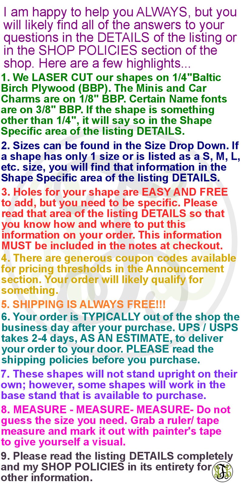 The welcome Wood Cutout is a great addition to your seasonal or year-round décor. It measures 9 wide by 275 tall has a thickness of 18 and is cut from premium quality Baltic. We custom cut the welcome wood cutout when you order it so let us know if there is something different that you are looking for.